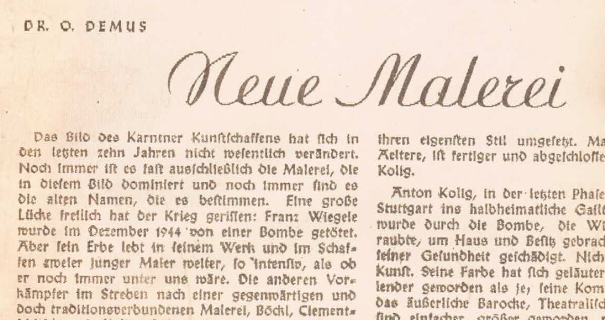 Otto Demus in: Österreichische Rundschau, März 1947, Sonderheft Kärnten, S. 253-254 Autor: Matthias Boeckl Writer, consultant, art & architectural historian Alle Beiträge von Matthias Boeckl anzeigen